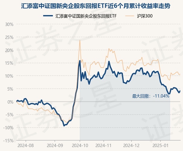 证券之星消息,1月23日,汇添富中证国新央企股东回报ETF最新单位净值为0.9968元,累计净值为1.0468元,较前一交易日上涨0.67%。历史数据显示该基金近1个月下跌5.36%,近3个月下跌5.5%,近6个月上涨4.13%,近1年上涨20.44%。该基金近6个月的累计收益率走势如下图: