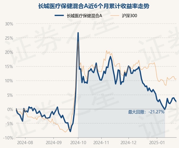 证券之星消息,1月23日,长城医疗保健混合A最新单位净值为2.2102元,累计净值为2.2102元,较前一交易日下跌0.49%。历史数据显示该基金近1个月下跌3.58%,近3个月下跌9.35%,近6个月上涨2.58%,近1年下跌9.56%。该基金近6个月的累计收益率走势如下图:
