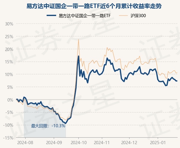 证券之星消息,1月23日,易方达中证国企一带一路ETF最新单位净值为1.3183元,累计净值为1.3183元,较前一交易日下跌0.02%。历史数据显示该基金近1个月下跌2.69%,近3个月下跌3.89%,近6个月上涨7.3%,近1年上涨22.62%。该基金近6个月的累计收益率走势如下图: