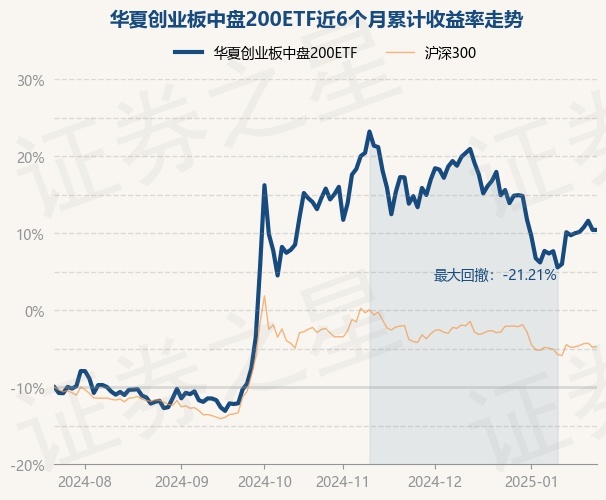 证券之星消息,1月23日,华夏创业板中盘200ETF最新单位净值为1.0968元,累计净值为1.0968元,较前一交易日上涨0.0%。历史数据显示该基金近1个月下跌6.34%,近3个月下跌5.21%,近6个月上涨40.38%,近1年上涨29.39%。该基金近6个月的累计收益率走势如下图: