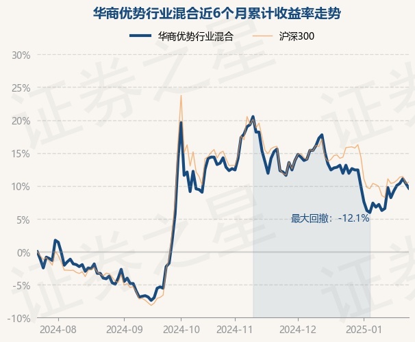 证券之星消息,1月23日,华商优势行业混合最新单位净值为1.068元,累计净值为3.398元,较前一交易日下跌0.65%。历史数据显示该基金近1个月下跌2.02%,近3个月下跌4.13%,近6个月上涨9.65%,近1年上涨16.98%。该基金近6个月的累计收益率走势如下图: