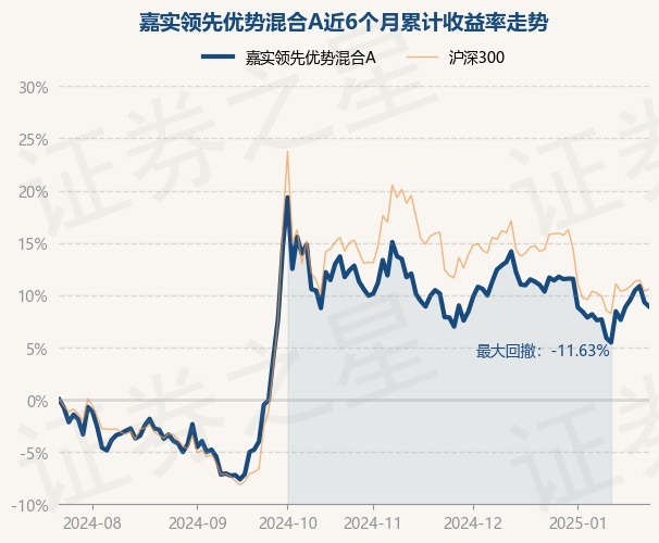 证券之星消息,1月23日,嘉实领先优势混合A最新单位净值为0.9107元,累计净值为0.9107元,较前一交易日下跌0.37%。历史数据显示该基金近1个月下跌1.3%,近3个月下跌4.22%,近6个月上涨8.91%,近1年上涨24.11%。该基金近6个月的累计收益率走势如下图: