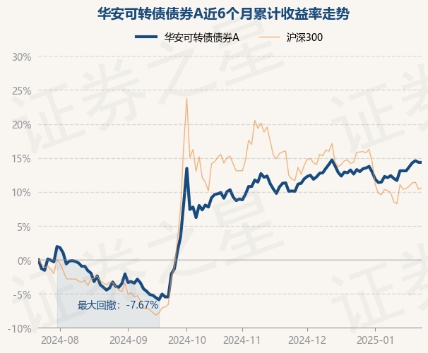 证券之星消息,1月23日,华安可转债债券A最新单位净值为1.929元,累计净值为1.929元,较前一交易日上涨0.0%。历史数据显示该基金近1个月上涨1.53%,近3个月上涨4.05%,近6个月上涨14.34%,近1年上涨16.7%。该基金近6个月的累计收益率走势如下图: