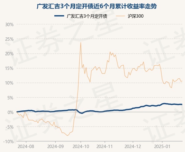 证券之星消息,1月23日,广发汇吉3个月定开债最新单位净值为1.1061元,累计净值为1.2792元,较前一交易日下跌0.04%。历史数据显示该基金近1个月上涨0.35%,近3个月上涨2.42%,近6个月上涨2.54%,近1年上涨5.91%。该基金近6个月的累计收益率走势如下图: