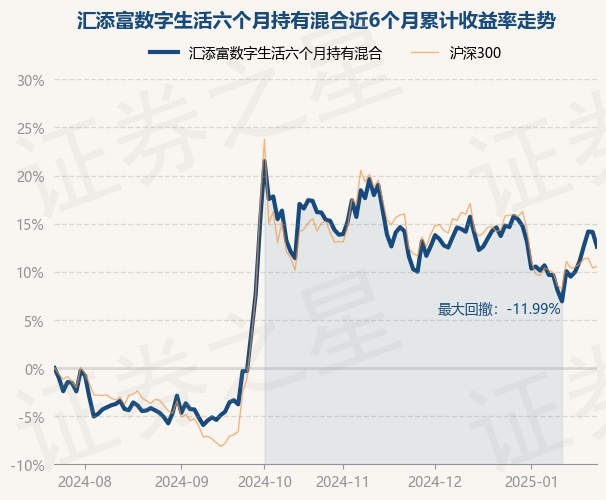 证券之星消息,1月23日,汇添富数字生活六个月持有混合最新单位净值为0.6355元,累计净值为0.6355元,较前一交易日下跌1.34%。历史数据显示该基金近1个月下跌0.97%,近3个月下跌4.05%,近6个月上涨12.62%,近1年上涨20.96%。该基金近6个月的累计收益率走势如下图: