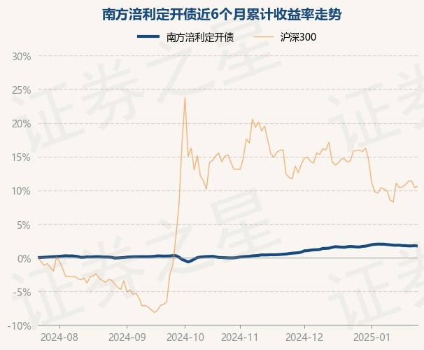证券之星消息,1月23日,南方涪利定开债最新单位净值为1.3143元,累计净值为1.3493元,较前一交易日下跌0.04%。历史数据显示该基金近1个月上涨0.08%,近3个月上涨1.72%,近6个月上涨1.73%,近1年上涨4.39%。该基金近6个月的累计收益率走势如下图: