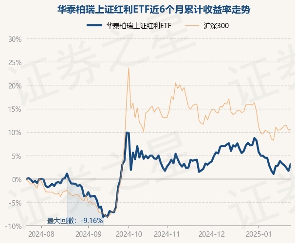 证券之星消息,1月23日,华泰柏瑞上证红利ETF最新单位净值为3.0461元,累计净值为2.9351元,较前一交易日上涨1.38%。历史数据显示该基金近1个月下跌2.66%,近3个月下跌1.74%,近6个月上涨3.14%,近1年上涨20.74%。该基金近6个月的累计收益率走势如下图: