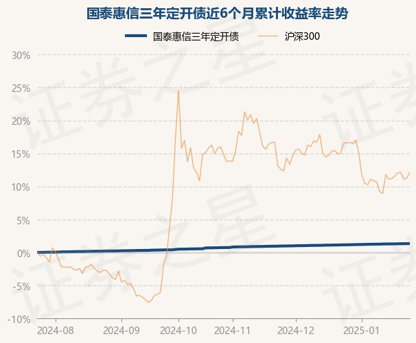 证券之星消息,1月24日,国泰惠信三年定开债最新单位净值为1.0049元,累计净值为1.1408元,较前一交易日上涨0.01%。历史数据显示该基金近1个月上涨0.18%,近3个月上涨0.63%,近6个月上涨1.34%,近1年上涨2.45%。该基金近6个月的累计收益率走势如下图: