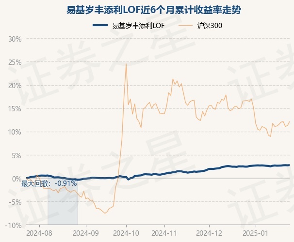 证券之星消息,1月24日,易基岁丰添利LOF最新单位净值为1.692元,累计净值为2.603元,较前一交易日上涨0.04%。历史数据显示该基金近1个月上涨0.25%,近3个月上涨2.04%,近6个月上涨2.79%,近1年上涨5.82%。该基金近6个月的累计收益率走势如下图: