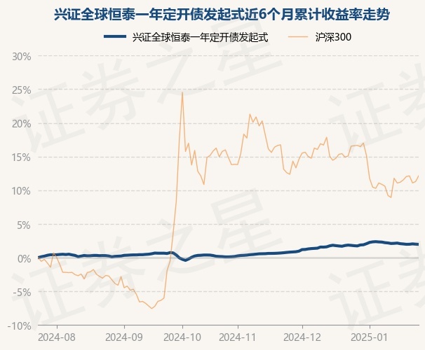 证券之星消息,1月24日,兴证全球恒泰一年定开债发起式最新单位净值为1.0164元,累计净值为1.0933元,较前一交易日下跌0.03%。历史数据显示该基金近1个月上涨1.13%,近3个月上涨1.8%,近6个月上涨1.97%,近1年上涨4.56%。该基金近6个月的累计收益率走势如下图: