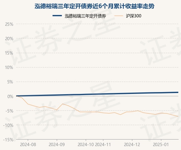 证券之星消息,1月24日,泓德裕瑞三年定开债券最新单位净值为1.0739元,累计净值为1.1117元,较前一交易日上涨0.04%。历史数据显示该基金近1个月上涨0.22%,近3个月上涨0.62%,近6个月上涨1.23%,近1年上涨2.43%。该基金近6个月的累计收益率走势如下图: