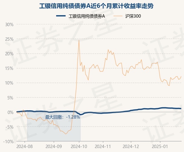 证券之星消息,1月24日,工银信用纯债债券A最新单位净值为1.4742元,累计净值为1.5152元,较前一交易日下跌0.03%。历史数据显示该基金近1个月上涨0.06%,近3个月上涨1.46%,近6个月上涨1.13%,近1年上涨4.21%。该基金近6个月的累计收益率走势如下图: