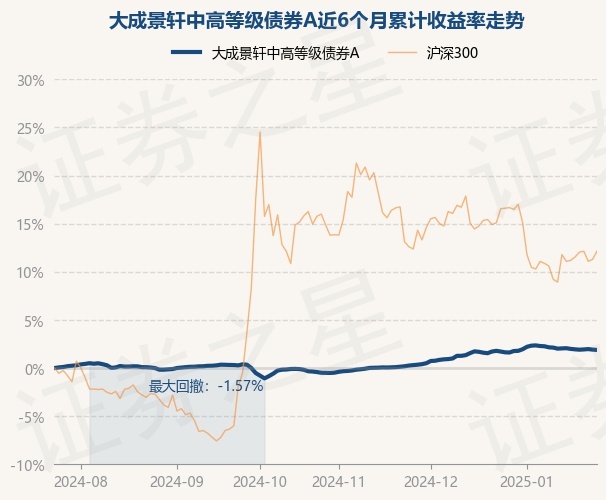 证券之星消息,1月24日,大成景轩中高等级债券A最新单位净值为1.1179元,累计净值为1.1629元,较前一交易日下跌0.04%。历史数据显示该基金近1个月上涨0.16%,近3个月上涨2.25%,近6个月上涨1.88%,近1年上涨5.62%。该基金近6个月的累计收益率走势如下图: