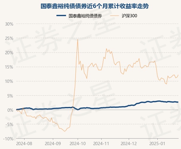 证券之星消息,1月24日,国泰鑫裕纯债债券最新单位净值为1.0503元,累计净值为1.0919元,较前一交易日上涨0.01%。历史数据显示该基金近1个月下跌0.1%,近3个月上涨2.25%,近6个月上涨2.65%,近1年上涨5.42%。该基金近6个月的累计收益率走势如下图: