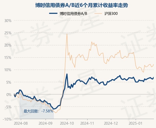 证券之星消息,1月24日,博时信用债券A/B最新单位净值为3.1497元,累计净值为3.2647元,较前一交易日上涨0.58%。历史数据显示该基金近1个月上涨0.11%,近3个月上涨1.53%,近6个月上涨6.78%,近1年上涨14.58%。该基金近6个月的累计收益率走势如下图: