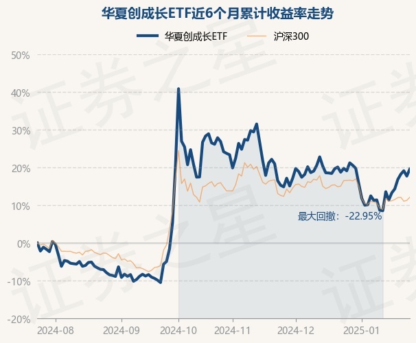 证券之星消息,1月24日,华夏创成长ETF最新单位净值为0.4651元,累计净值为1.6922元,较前一交易日上涨1.59%。历史数据显示该基金近1个月下跌0.15%,近3个月下跌5.2%,近6个月上涨19.62%,近1年上涨24.89%。该基金近6个月的累计收益率走势如下图: