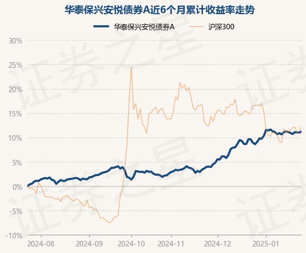 证券之星消息,1月24日,华泰保兴安悦债券A最新单位净值为1.1584元,累计净值为1.3225元,较前一交易日上涨0.16%。历史数据显示该基金近1个月上涨2.06%,近3个月上涨8.61%,近6个月上涨11.2%,近1年上涨17.77%。该基金近6个月的累计收益率走势如下图:
