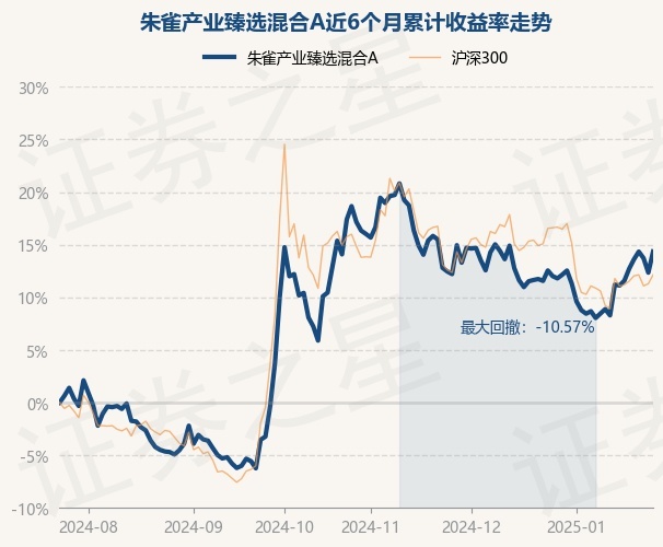 证券之星消息,1月24日,朱雀产业臻选混合A最新单位净值为1.4377元,累计净值为1.4377元,较前一交易日上涨1.78%。历史数据显示该基金近1个月上涨1.6%,近3个月上涨0.24%,近6个月上涨14.35%,近1年上涨8.27%。该基金近6个月的累计收益率走势如下图: