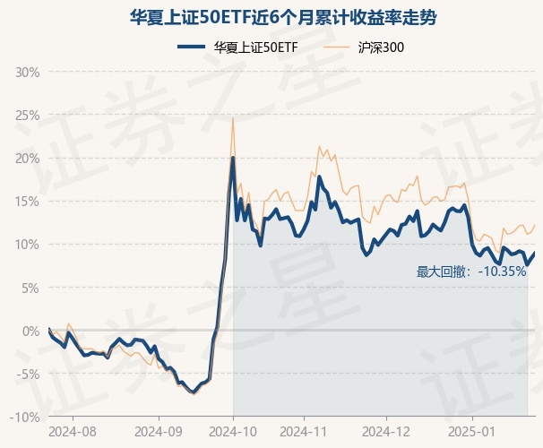 证券之星消息,1月24日,华夏上证50ETF最新单位净值为2.6372元,累计净值为3.9708元,较前一交易日上涨0.56%。历史数据显示该基金近1个月下跌4.31%,近3个月下跌3.54%,近6个月上涨8.84%,近1年上涨17.22%。该基金近6个月的累计收益率走势如下图: