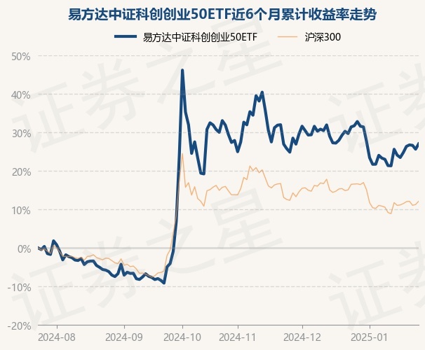 证券之星消息,1月24日,易方达中证科创创业50ETF最新单位净值为0.5599元,累计净值为0.5599元,较前一交易日上涨1.1%。历史数据显示该基金近1个月下跌3.35%,近3个月下跌2.3%,近6个月上涨27.05%,近1年上涨26.42%。该基金近6个月的累计收益率走势如下图: