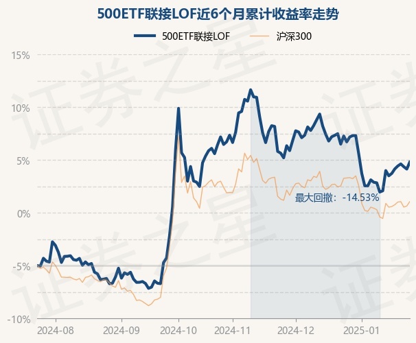 证券之星消息,1月24日,500ETF联接LOF最新单位净值为1.5824元,累计净值为1.6824元,较前一交易日上涨1.13%。历史数据显示该基金近1个月下跌3.96%,近3个月下跌1.3%,近6个月上涨19.63%,近1年上涨15.13%。该基金近6个月的累计收益率走势如下图: