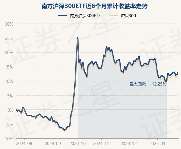 证券之星消息,1月24日,南方沪深300ETF最新单位净值为3.8597元,累计净值为1.7366元,较前一交易日上涨0.83%。历史数据显示该基金近1个月下跌3.58%,近3个月下跌2.09%,近6个月上涨13.19%,近1年上涨20.39%。该基金近6个月的累计收益率走势如下图: