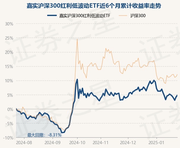 证券之星消息,1月24日,嘉实沪深300红利低波动ETF最新单位净值为1.3353元,累计净值为1.6016元,较前一交易日上涨0.58%。历史数据显示该基金近1个月下跌3.6%,近3个月下跌0.29%,近6个月上涨4.72%,近1年上涨20.32%。该基金近6个月的累计收益率走势如下图: