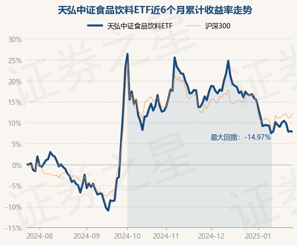证券之星消息,1月24日,天弘中证食品饮料ETF最新单位净值为0.6795元,累计净值为0.6795元,较前一交易日下跌0.13%。历史数据显示该基金近1个月下跌8.15%,近3个月下跌4.47%,近6个月上涨7.84%,近1年下跌1.78%。该基金近6个月的累计收益率走势如下图: