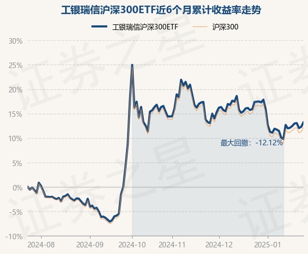 证券之星消息,1月24日,工银瑞信沪深300ETF最新单位净值为3.8839元,累计净值为1.1066元,较前一交易日上涨0.82%。历史数据显示该基金近1个月下跌3.55%,近3个月下跌2.01%,近6个月上涨13.02%,近1年上涨20.36%。该基金近6个月的累计收益率走势如下图: