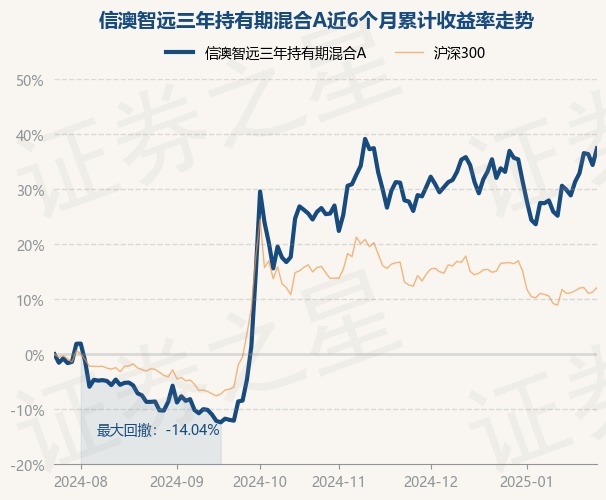 证券之星消息,1月24日,信澳智远三年持有期混合A最新单位净值为0.778元,累计净值为0.778元,较前一交易日上涨2.26%。历史数据显示该基金近1个月上涨2.72%,近3个月上涨10.4%,近6个月上涨37.46%,近1年上涨33.7%。该基金近6个月的累计收益率走势如下图: