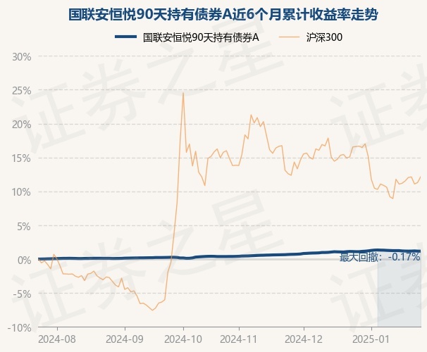 证券之星消息,1月24日,国联安恒悦90天持有债券A最新单位净值为1.0991元,累计净值为1.0991元,较前一交易日下跌0.01%。历史数据显示该基金近1个月上涨0.05%,近3个月上涨0.79%,近6个月上涨1.17%,近1年上涨2.83%。该基金近6个月的累计收益率走势如下图: