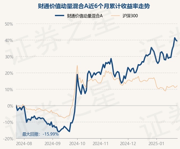 证券之星消息,1月24日,财通价值动量混合A最新单位净值为4.907元,累计净值为5.378元,较前一交易日下跌0.35%。历史数据显示该基金近1个月上涨6.35%,近3个月上涨17.7%,近6个月上涨39.4%,近1年上涨58.96%。该基金近6个月的累计收益率走势如下图: