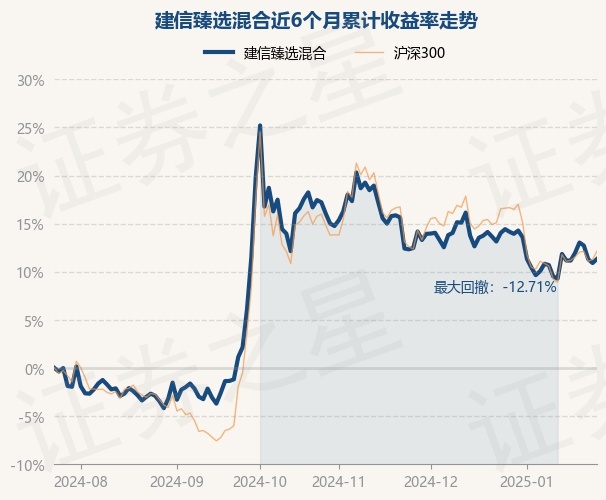 证券之星消息,1月24日,建信臻选混合最新单位净值为0.8224元,累计净值为0.8224元,较前一交易日上涨0.38%。历史数据显示该基金近1个月下跌2.37%,近3个月下跌4.59%,近6个月上涨11.33%,近1年上涨15.36%。该基金近6个月的累计收益率走势如下图: