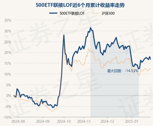 证券之星消息,1月27日,500ETF联接LOF最新单位净值为1.5662元,累计净值为1.6662元,较前一交易日下跌1.02%。历史数据显示该基金近1个月下跌5.0%,近3个月下跌3.66%,近6个月上涨16.76%,近1年上涨11.87%。该基金近6个月的累计收益率走势如下图: