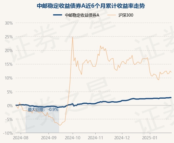 证券之星消息,1月27日,中邮稳定收益债券A最新单位净值为1.142元,累计净值为1.69元,较前一交易日上涨0.0%。历史数据显示该基金近1个月上涨0.35%,近3个月上涨2.15%,近6个月上涨2.79%,近1年上涨5.55%。该基金近6个月的累计收益率走势如下图: