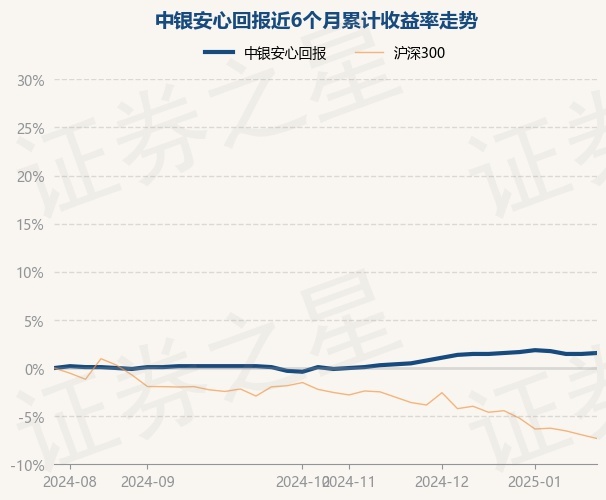 证券之星消息,1月27日,中银安心回报最新单位净值为1.035元,累计净值为1.438元,较前一交易日上涨0.1%。历史数据显示该基金近1个月上涨0.0%,近3个月上涨1.66%,近6个月上涨1.56%,近1年上涨4.95%。该基金近6个月的累计收益率走势如下图: