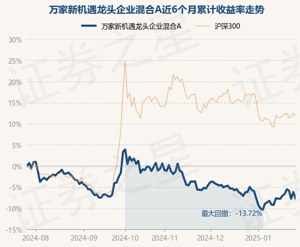 证券之星消息,1月27日,万家新机遇龙头企业混合A最新单位净值为1.3751元,累计净值为2.4151元,较前一交易日下跌1.62%。历史数据显示该基金近1个月下跌2.12%,近3个月下跌7.4%,近6个月下跌7.61%,近1年下跌4.59%。该基金近6个月的累计收益率走势如下图: