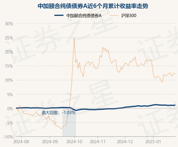 证券之星消息,1月27日,中加颐合纯债债券A最新单位净值为1.0408元,累计净值为1.2179元,较前一交易日上涨0.12%。历史数据显示该基金近1个月上涨0.24%,近3个月上涨1.62%,近6个月上涨1.12%,近1年上涨3.72%。该基金近6个月的累计收益率走势如下图: