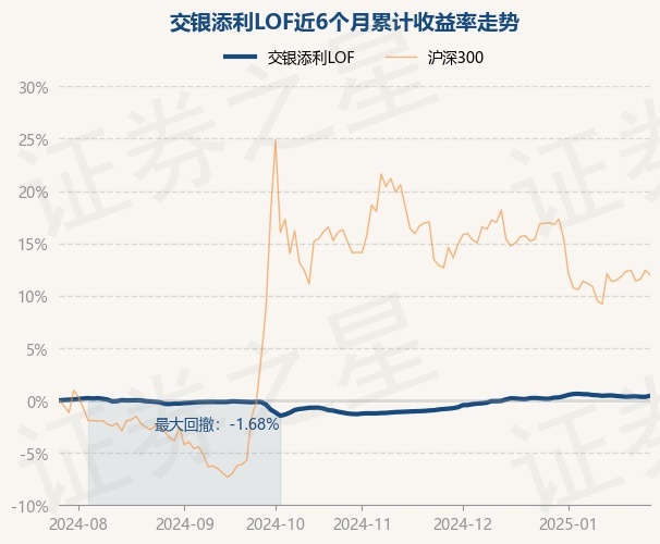 证券之星消息,1月27日,交银添利LOF最新单位净值为1.1061元,累计净值为1.8311元,较前一交易日上涨0.1%。历史数据显示该基金近1个月上涨0.18%,近3个月上涨1.54%,近6个月上涨0.44%,近1年上涨2.67%。该基金近6个月的累计收益率走势如下图:
