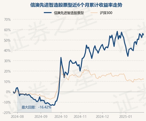 证券之星消息,1月27日,信澳先进智造股票型最新单位净值为1.8771元,累计净值为2.4974元,较前一交易日下跌0.88%。历史数据显示该基金近1个月上涨0.32%,近3个月上涨21.2%,近6个月上涨54.75%,近1年上涨44.15%。该基金近6个月的累计收益率走势如下图: