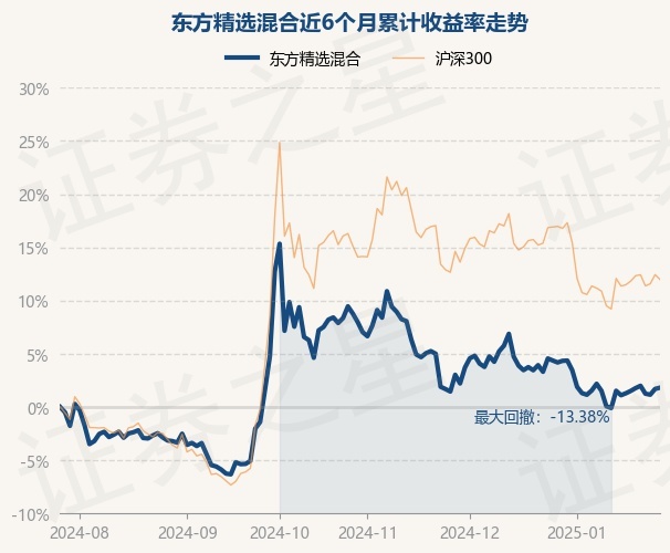 证券之星消息,1月27日,东方精选混合最新单位净值为1.6071元,累计净值为4.9572元,较前一交易日上涨0.11%。历史数据显示该基金近1个月下跌2.42%,近3个月下跌6.03%,近6个月上涨1.82%,近1年上涨9.77%。该基金近6个月的累计收益率走势如下图: