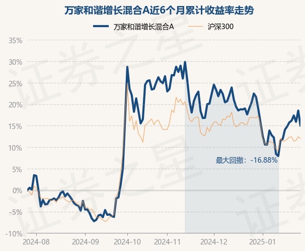 证券之星消息,1月27日,万家和谐增长混合A最新单位净值为1.7698元,累计净值为3.8852元,较前一交易日下跌2.93%。历史数据显示该基金近1个月下跌5.45%,近3个月下跌8.01%,近6个月上涨15.05%,近1年上涨39.26%。该基金近6个月的累计收益率走势如下图:
