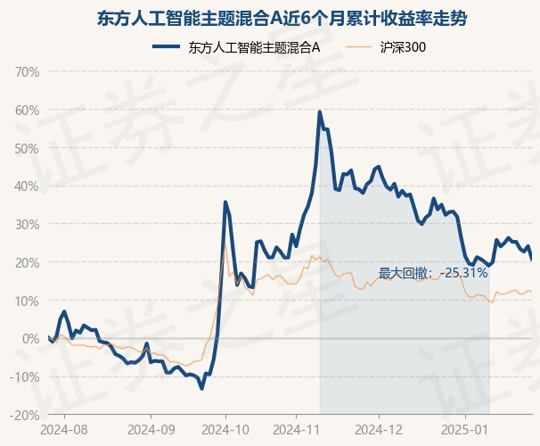 证券之星消息,1月27日,东方人工智能主题混合A最新单位净值为0.9864元,累计净值为0.9864元,较前一交易日下跌2.67%。历史数据显示该基金近1个月下跌9.28%,近3个月下跌2.42%,近6个月上涨20.72%,近1年上涨22.5%。该基金近6个月的累计收益率走势如下图: