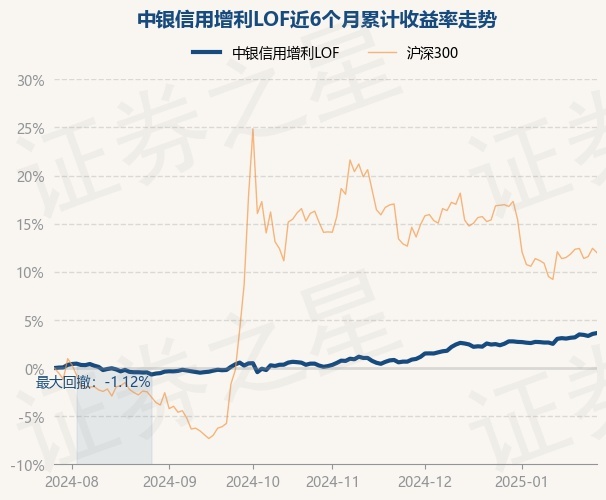 证券之星消息,1月27日,中银信用增利LOF最新单位净值为1.138元,累计净值为1.7917元,较前一交易日上涨0.09%。历史数据显示该基金近1个月上涨0.84%,近3个月上涨3.16%,近6个月上涨3.63%,近1年上涨7.01%。该基金近6个月的累计收益率走势如下图: