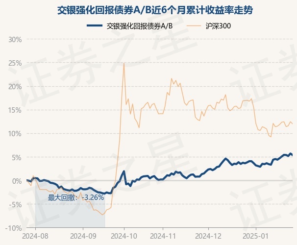 证券之星消息,1月27日,交银强化回报债券A/B最新单位净值为1.1621元,累计净值为1.3701元,较前一交易日下跌0.31%。历史数据显示该基金近1个月上涨1.25%,近3个月上涨4.58%,近6个月上涨5.36%,近1年上涨6.52%。该基金近6个月的累计收益率走势如下图: