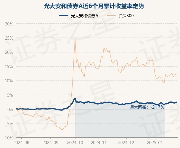 证券之星消息,1月27日,光大安和债券A最新单位净值为1.0873元,累计净值为1.3646元,较前一交易日上涨0.21%。历史数据显示该基金近1个月上涨0.42%,近3个月上涨0.17%,近6个月上涨2.47%,近1年上涨2.97%。该基金近6个月的累计收益率走势如下图:
