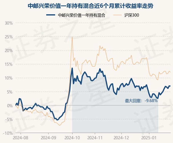 证券之星消息,1月27日,中邮兴荣价值一年持有混合最新单位净值为0.9784元,累计净值为0.9784元,较前一交易日下跌0.02%。历史数据显示该基金近1个月上涨0.3%,近3个月下跌3.07%,近6个月上涨6.99%,近1年上涨5.07%。该基金近6个月的累计收益率走势如下图: