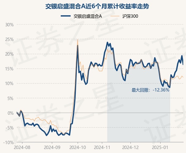 证券之星消息,1月27日,交银启盛混合A最新单位净值为0.9704元,累计净值为0.9704元,较前一交易日下跌2.45%。历史数据显示该基金近1个月下跌0.65%,近3个月下跌0.32%,近6个月上涨16.38%,近1年上涨15.98%。该基金近6个月的累计收益率走势如下图:
