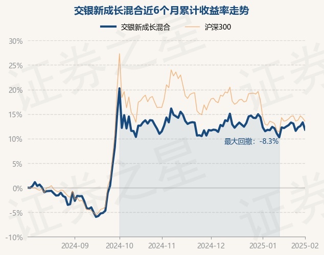 证券之星消息,2月5日,交银新成长混合最新单位净值为3.159元,累计净值为3.559元,较前一交易日下跌1.31%。历史数据显示该基金近1个月上涨0.29%,近3个月下跌2.17%,近6个月上涨11.82%,近1年上涨5.48%。该基金近6个月的累计收益率走势如下图: