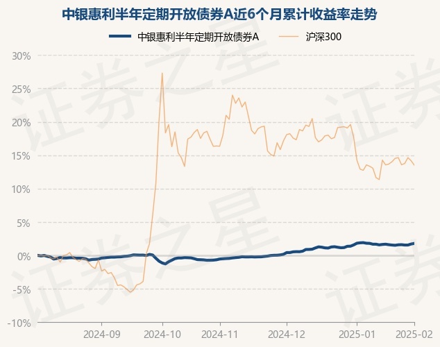 证券之星消息,2月5日,中银惠利半年定期开放债券A最新单位净值为1.1302元,累计净值为1.59元,较前一交易日上涨0.09%。历史数据显示该基金近1个月下跌0.09%,近3个月上涨2.27%,近6个月上涨1.79%,近1年上涨4.9%。该基金近6个月的累计收益率走势如下图: